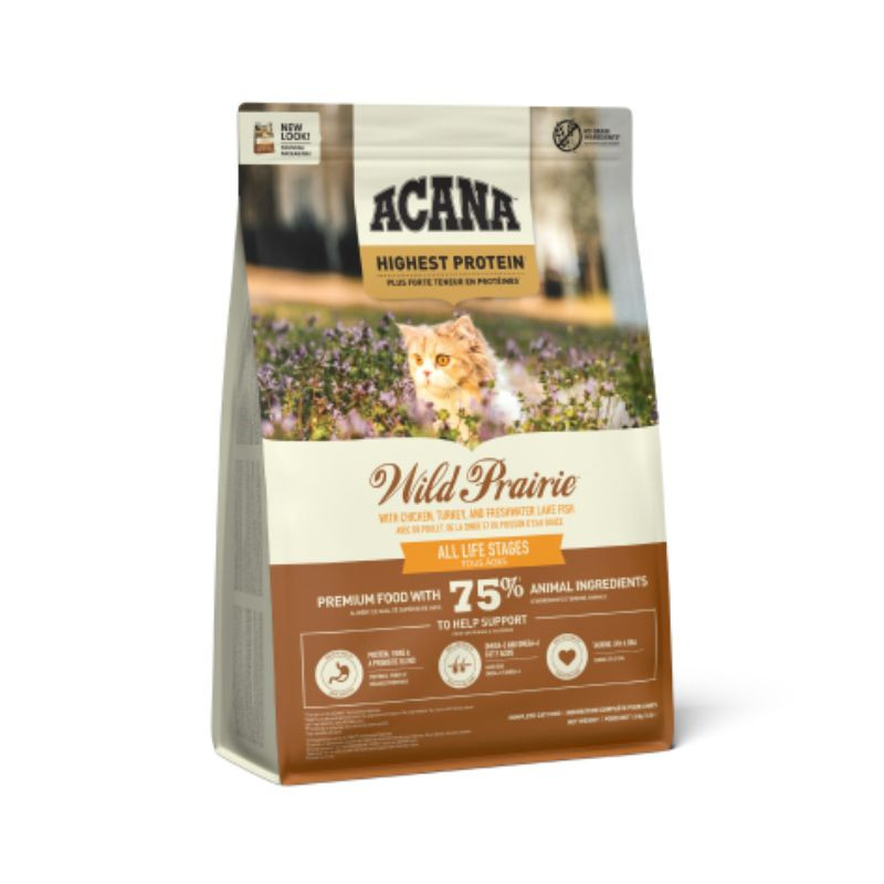 ACANA Wild Prairie täissööt kassidele sisaldab kvaliteetseid loomseid koostisosi – vabapidamisel kasvatatud kana ja kalkunit, mageveekala ning mune – vastavalt WholePrey™ kontseptsioonile. Sobib kõigile kassidele, sõltumata tõust ja vanusest.