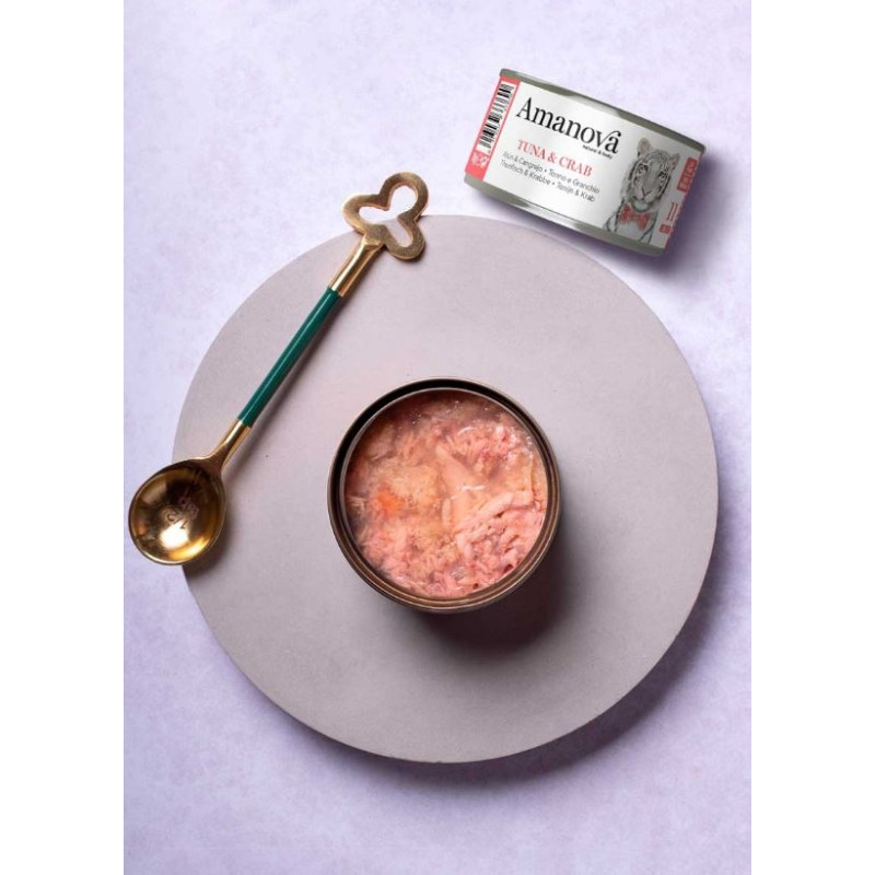 AMANOVA. Täiendsööt täiskasvanud kassile. Tuunikala ja krabi tarretises.