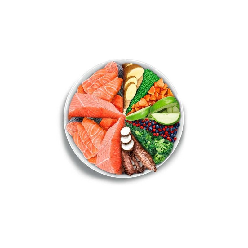 rohelised herned, hernevalk, dehüdreeritud kartul, pärm (Saccharomyces cerevisiae), lõhe hüdrolüsaat, mineraalid, linaseemned (looduslik omega-3 rasvhapete allikas), kartulivalk, õunakiud, kalaõli (kaitstud looduslike tokoferoolidega), maguskartul, tapiokk, dehüdreeritud lehtkapsas, tavaline hiilgevähk, pruunvetikad, spirulina, tääkliilia