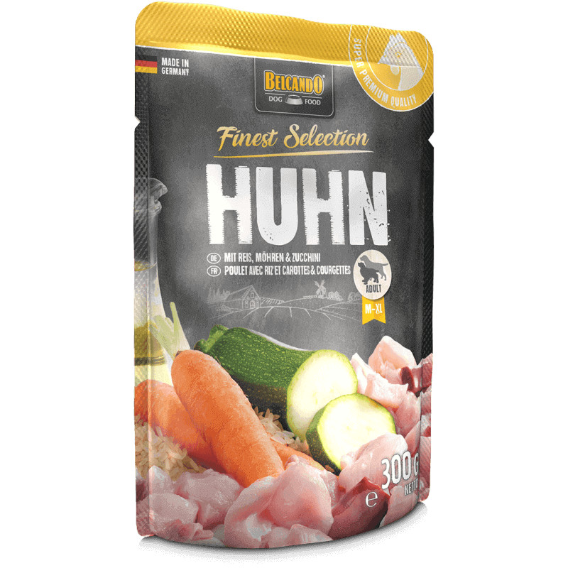 Saksa Belcando Super Premium konservsööt kana, riisi, porgandi ja suvikõrvitsaga koertele. Esmaklassiline looduslik täiendsöödakompleks koertele. Sobib tundlikele, keskmise kuni suure suurusega täiskasvanud koertele.