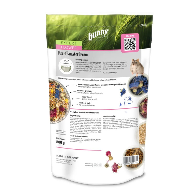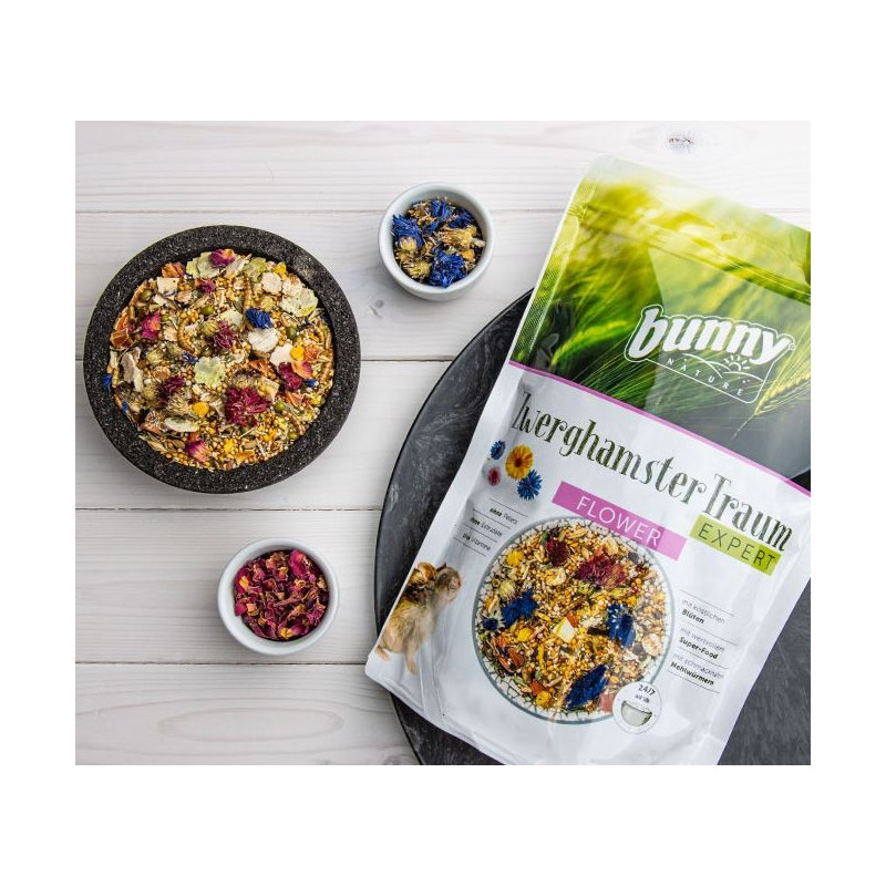 Bunny Nature - Dwarf Hamster Dream Expert Flower. Täissööt kääbushamstrile. Spetsiaalne vitamiini-mineraalide kompleks, ilma puuviljadeta (diabeedi ennetamiseks).
