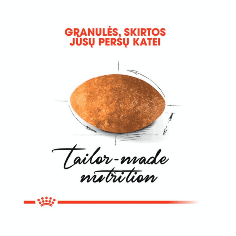 Täisväärtuslik kuivtoit, mis on spetsiaalselt kohandatud üle 12 kuu vanustele täiskasvanud Pärsia kassidele. Annab karvkattele heleduse ja sära. Ennetab karvapallide teket.