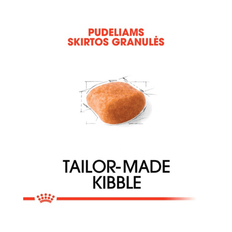 Royal Canin Poodle Adult on spetsiaalselt tasakaalustatud kuivtoit üle 10 kuu vanustele täiskasvanud puudlitele. Hoolikalt valitud koostisained toetavad ilusat ja lokkis karva, spetsiaalsed graanulid ennetavad hambakivi teket.