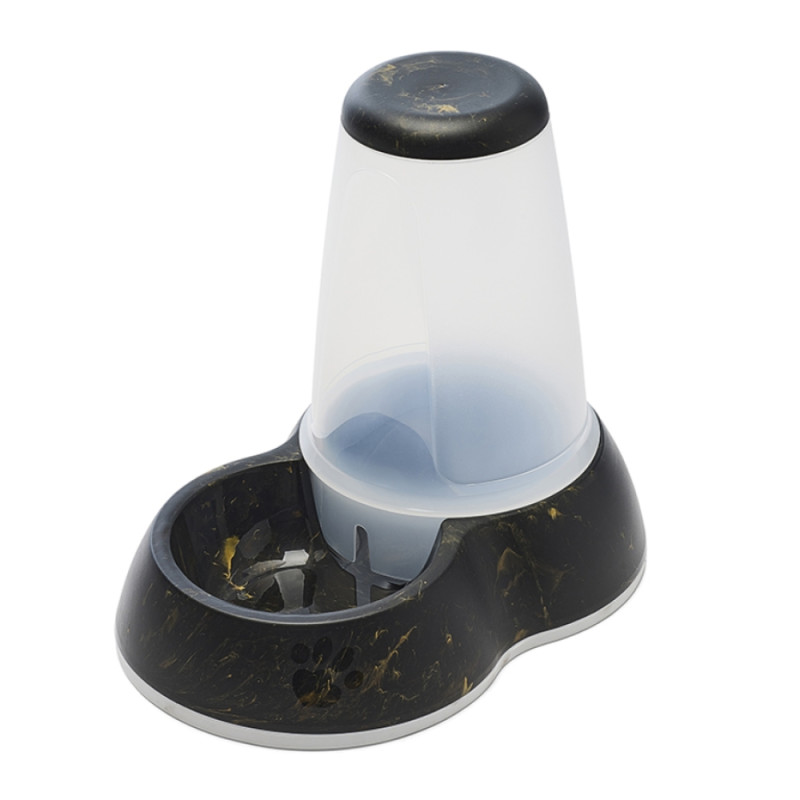 See modernse disainiga dosaator täiendab su kodu sisekujundust elegantse marmorja must-kuld viimistlusega, pakkudes samal ajal lemmikule alati värsket vett.