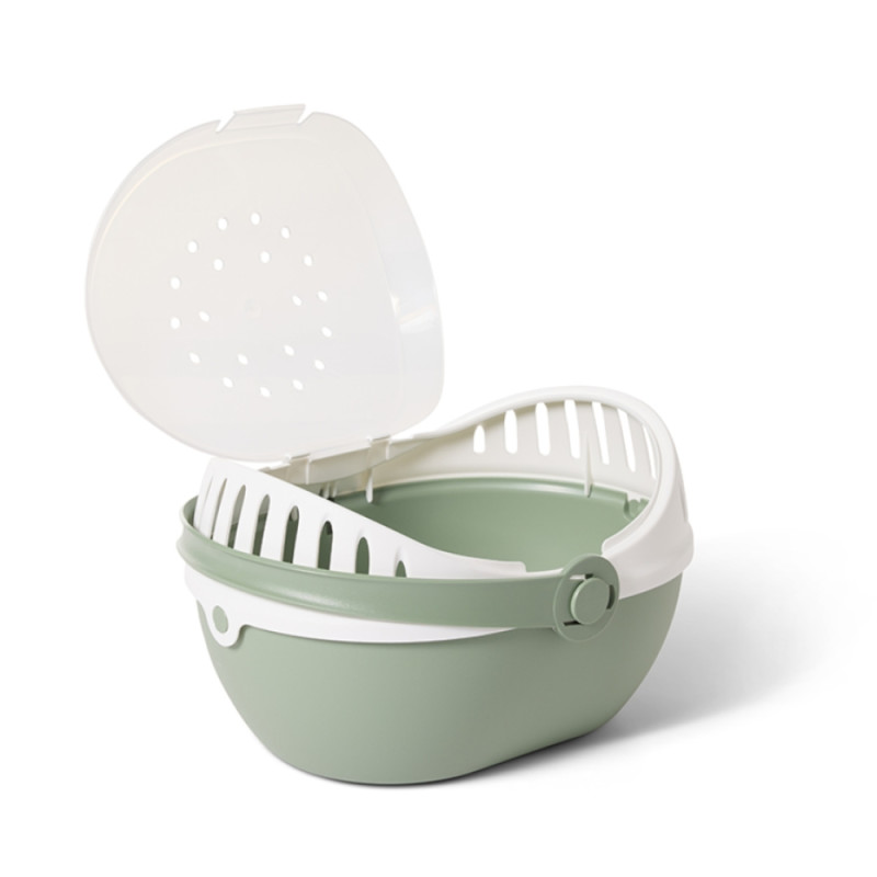 Botanical green värvi põhjaga, valge ülaosa ja läbipaistva kaanega kandekast tagab sinu lemmikule ohutu ja mugava reisi, olgu selleks loomaarsti külastus või pikem teekond.